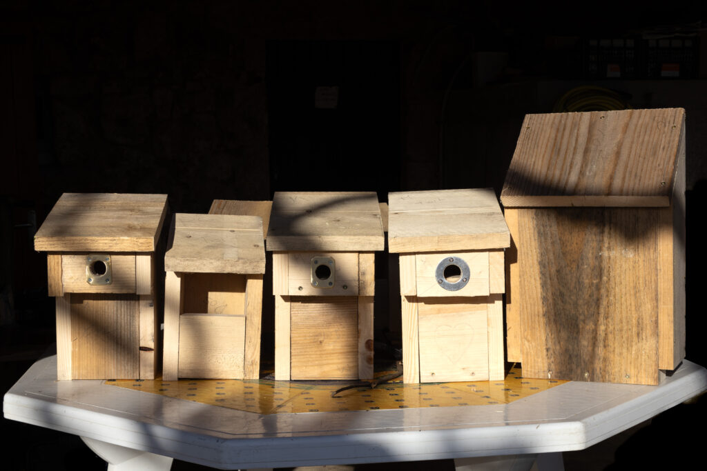 Nous avons récemment mis en place une opération « nichoirs » afin d’offrir aux passereaux (mésanges, grimpereaux, rouge-gorges, rouge-queues…) des opportunités d’installation pour leur reproduction ; ainsi que des abris pour le repos diurne des chauves-souris.